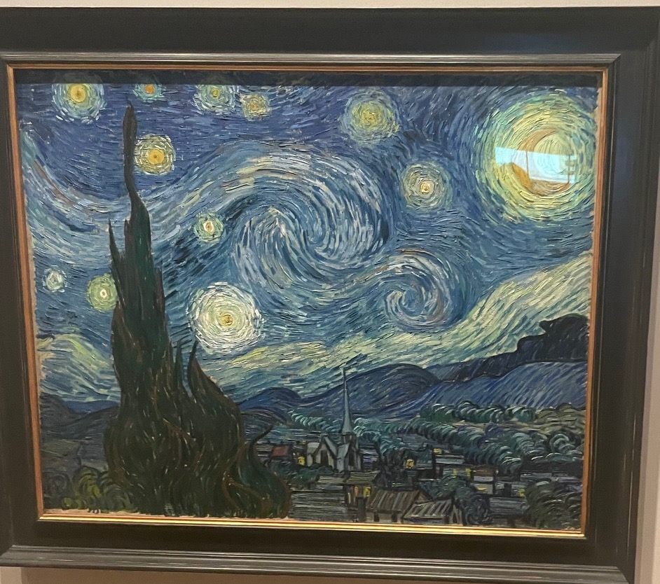 Lowlight – when I have seen van Gogh’s paintings before, in Seattle and, maybe, Los Angeles, their display allowed seeing the texture of the paint on the surface which enabled me to understand why he was thought to be on the brink of madness. However, “Starry Night” is such a celebrity that the security measures of the display prevent seeing the texture. The display might as well be a two-dimensional photo and I think that only the curators can currently truly appreciate this work. Hopefully, better “safe” displays of artwork will come along in the future.