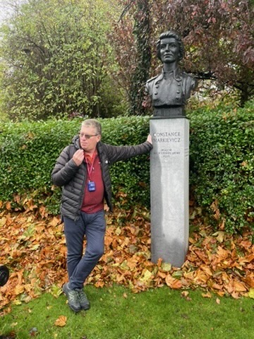 At St. Stephen’s Green Park with Stephen McDonough, our tour guide, and Constance Markievicz, a revolutionary and politician who helped bring Ireland its independence.