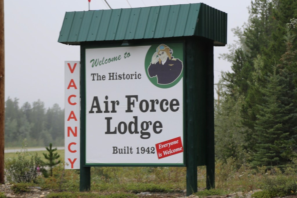 Day 22 – we made it to Watson Lake for a stay at the Air Force Lodge: WWII officers quarters with tiny rooms and beds..