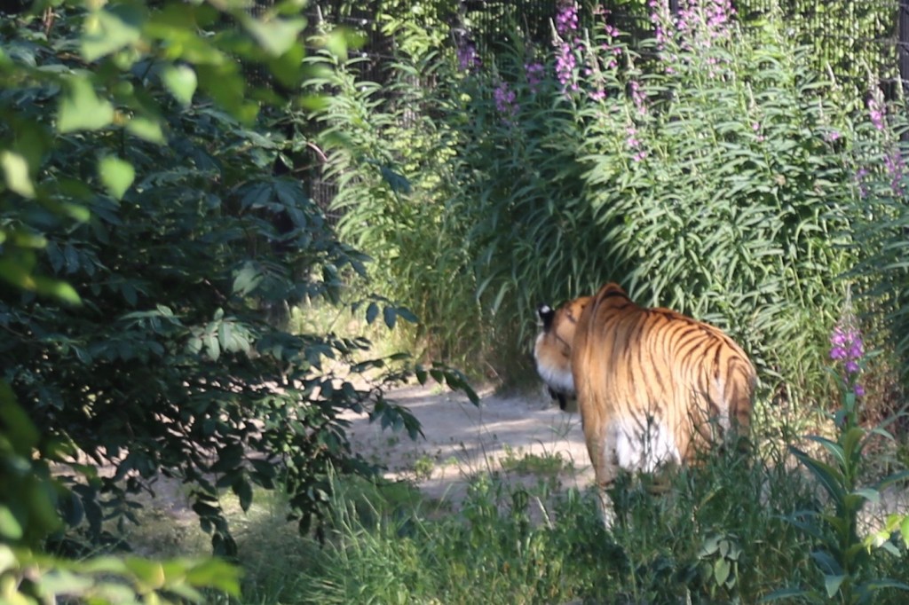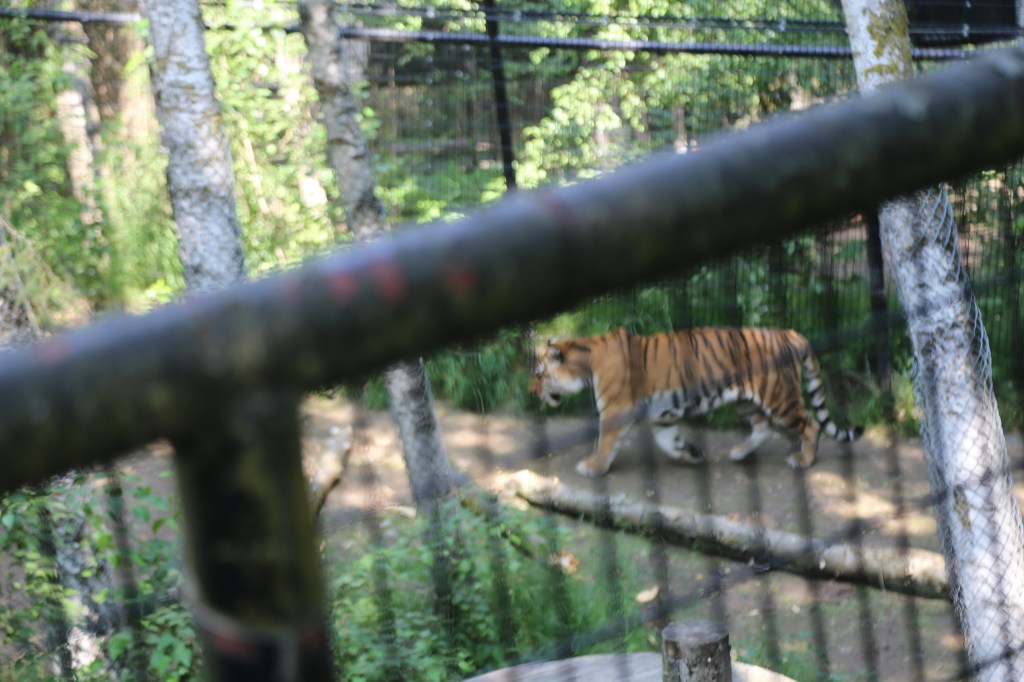 … and a snow leopard (Ron’s favorite! I really never expected to see one of these.). Unlike many animals (black bear, caribou, and numerous others) which were hiding in their lairs, the snow leopard was lying patiently at the front of the habitat (waiting for someone to reach in for petting … or a hand snack?).