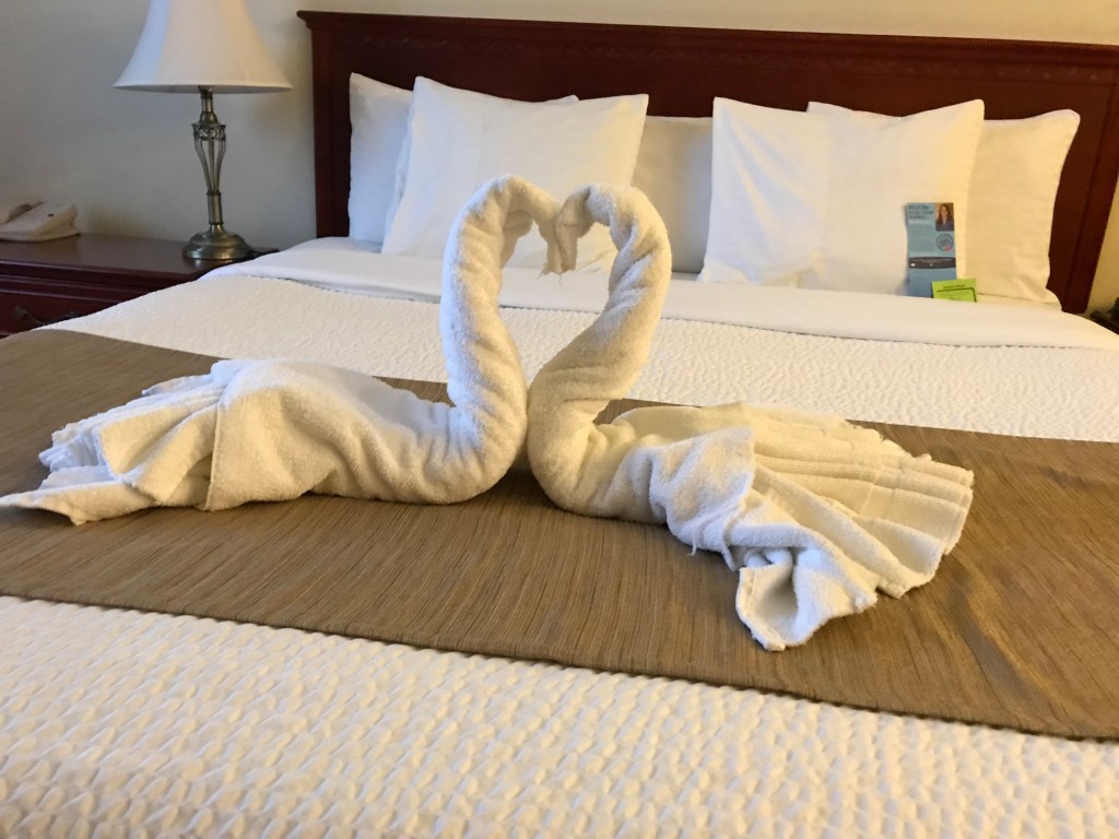 and sculpted towels at the motel.