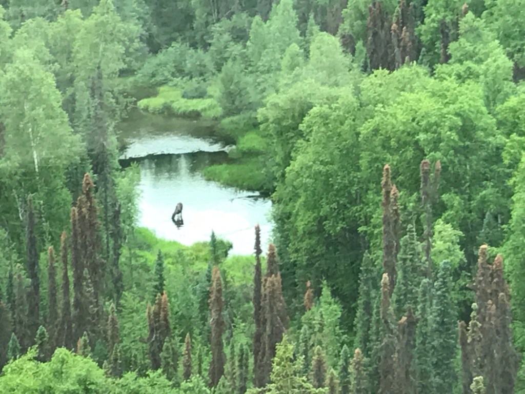 From our room, we could see a moose in the distance having an evening drink.