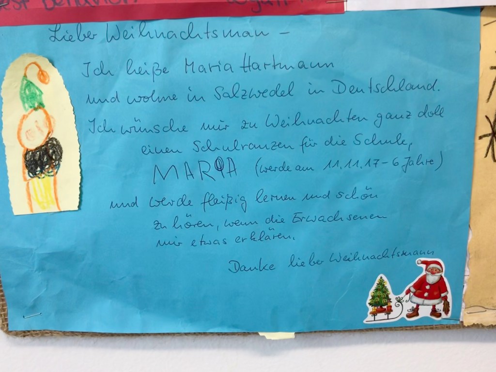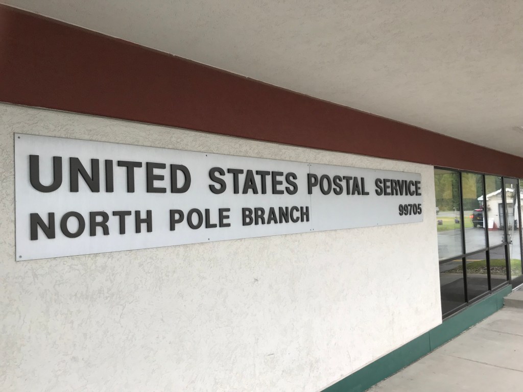 The entryway to the North Pole post office is papered with letters addressed to Santa … and not all of them are in English.