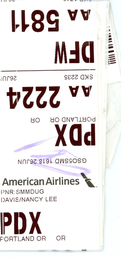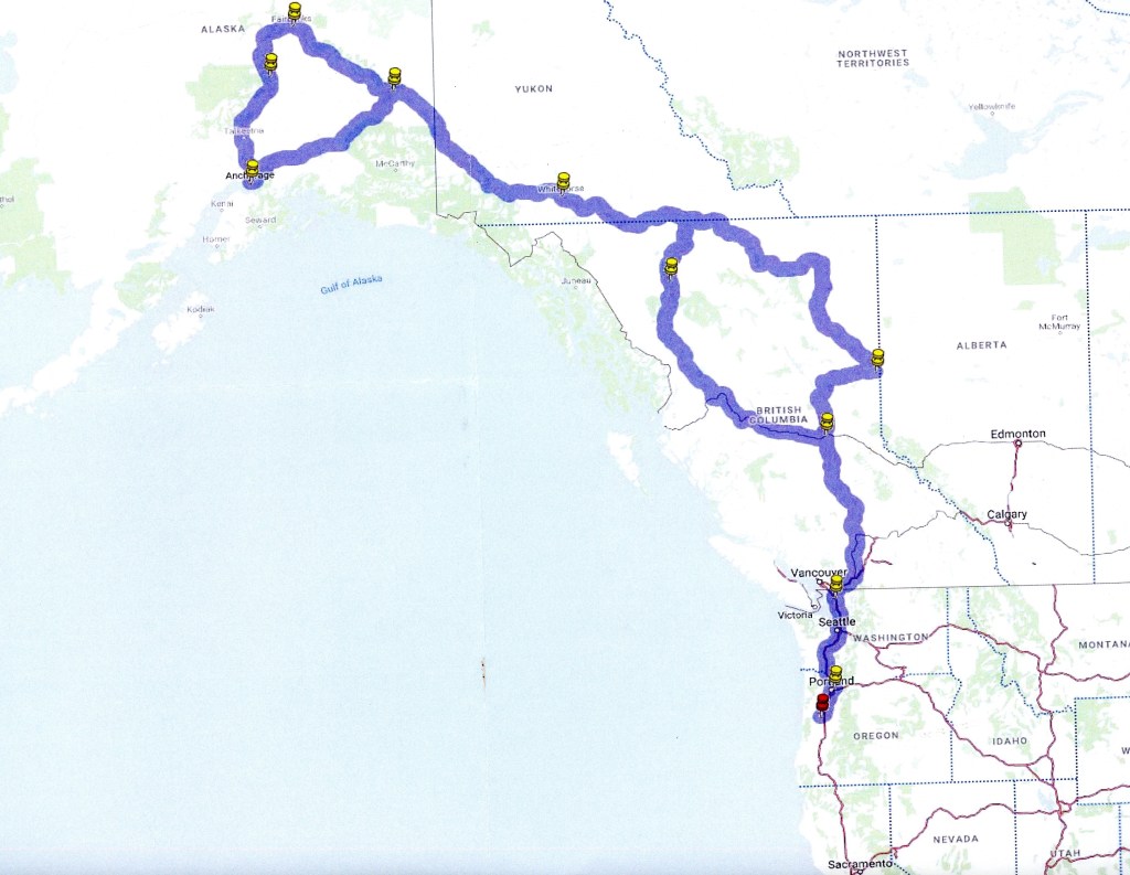 Lodging via Expedia.com, Booking.com (both with some glitches) and Airbnb (no glitch for our Anchorage stay). Nancy’s flights by American Airlines.